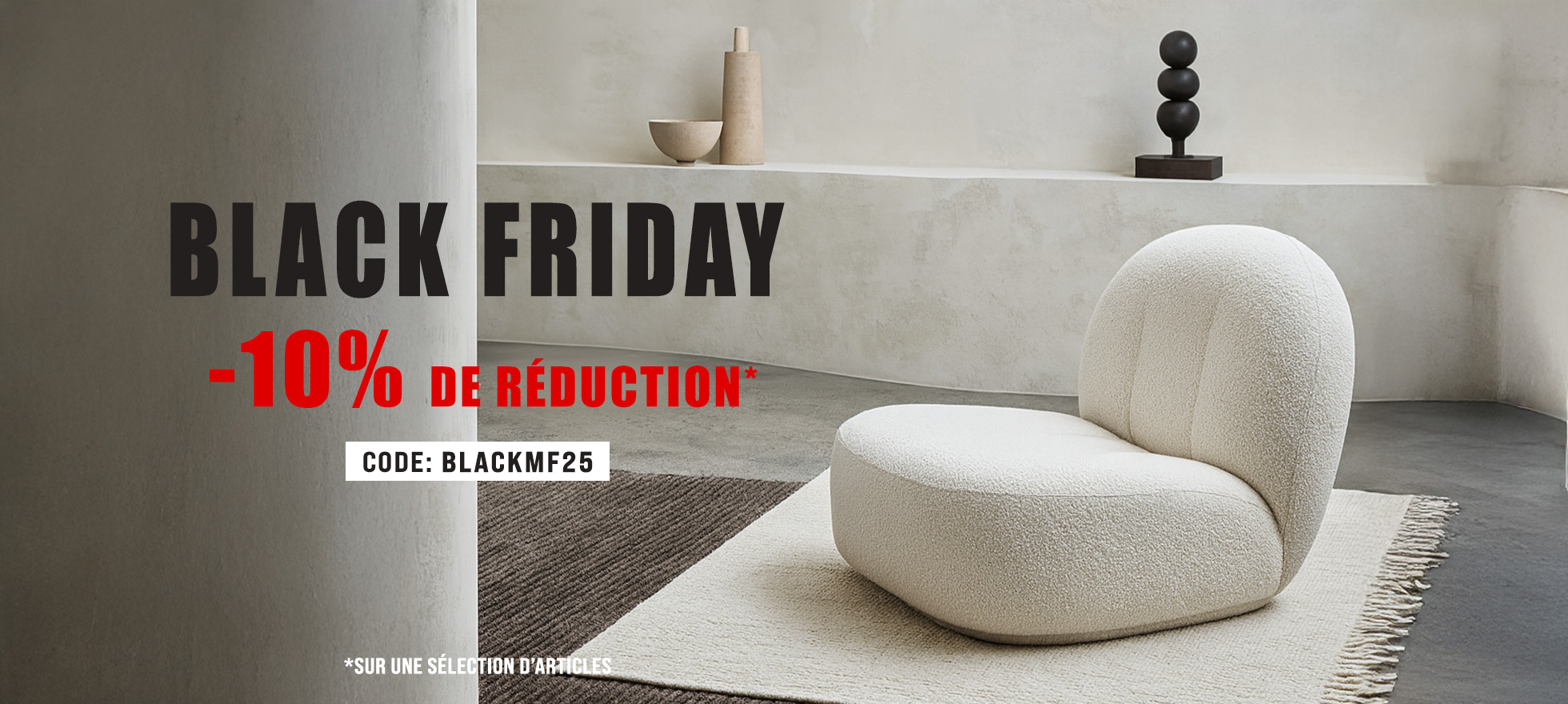 Fauteuil tapissé en bouclé blanc - Pieds noirs - Nuiba
