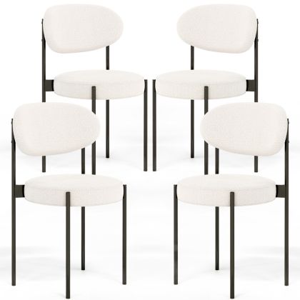 Lot de 4 - Chaise de salle à manger en bouclette fausse fourrure Tapissée - Boucles Blanches - Métal noir - Martha