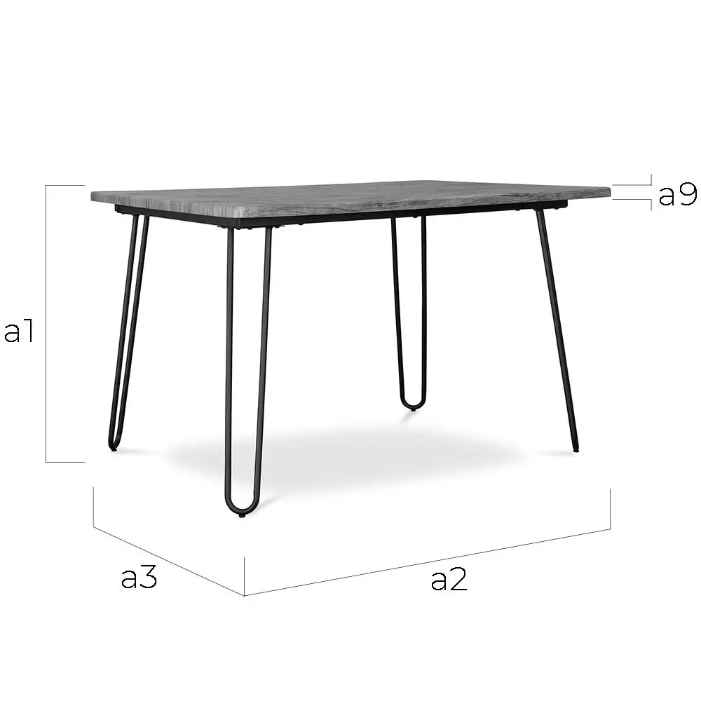 Cette table de salle à manger de style industriel présente quatre pieds en épingle extrêmement résistants et stables. Les meubles hairpin ou avec pieds en épingle sont très tendance dans le monde de la décoration. Vous serez séduit par le design et la qualité de cette table de salle à manger de style industriel que vous pourrez associer à n'importe quel style de chaises.