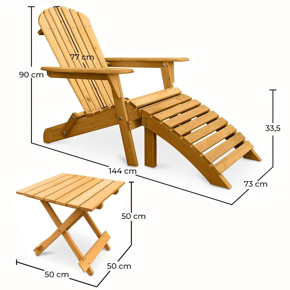 Si vous êtes à la recherche d’une table et d’une chaise de jardin en bois pour ajouter du style et de l’élégance à votre espace extérieur, vous êtes au bon endroit. Cet ensemble est composé d’une petite table en bois et d’une chaise longue en bois avec repose pied inclus. Fabriqué à partir de bois de pruche, ce mobilier de jardin résistera à toutes les conditions météorologiques. Solide, design et confortable, cet ensemble est idéal pour meubler votre jardin mais convient également pour les hôtels et restaurants.