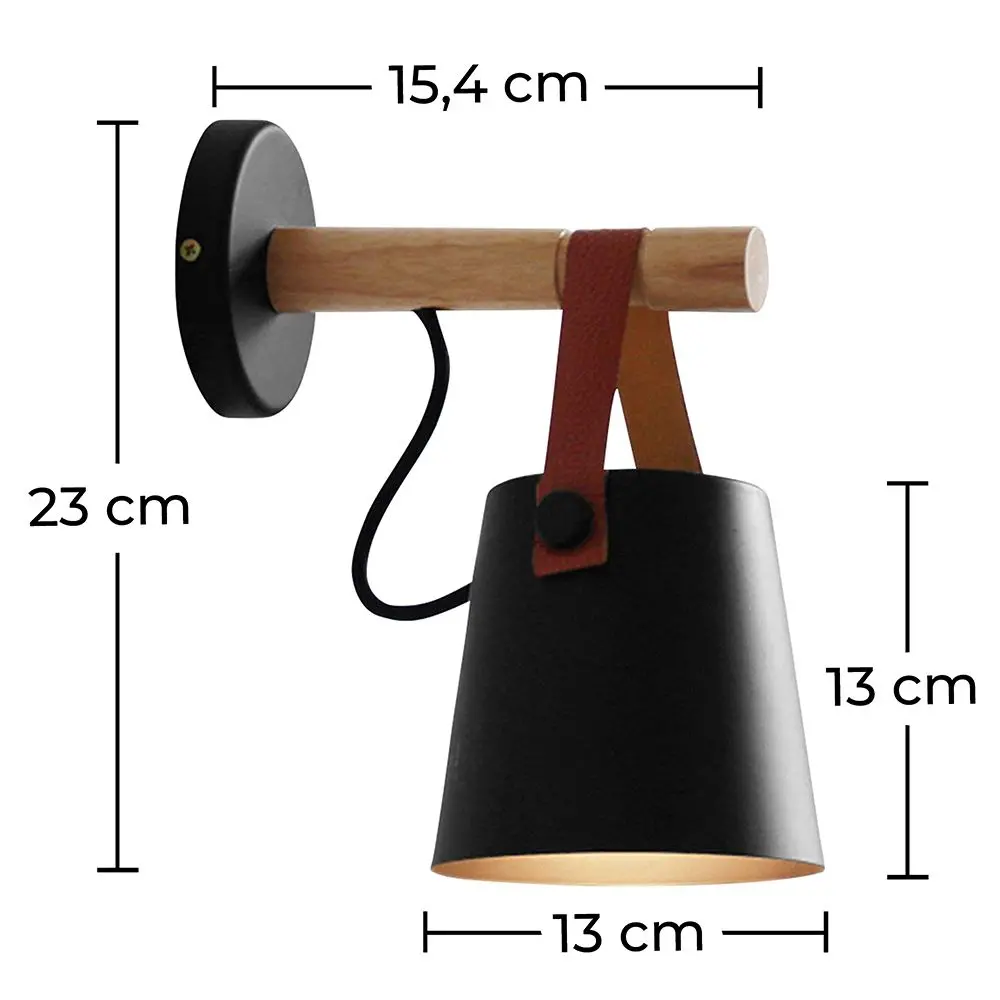 Cette applique moderne aux touches vintage combine parfaitement le métal avec le bois et le cuir brun.