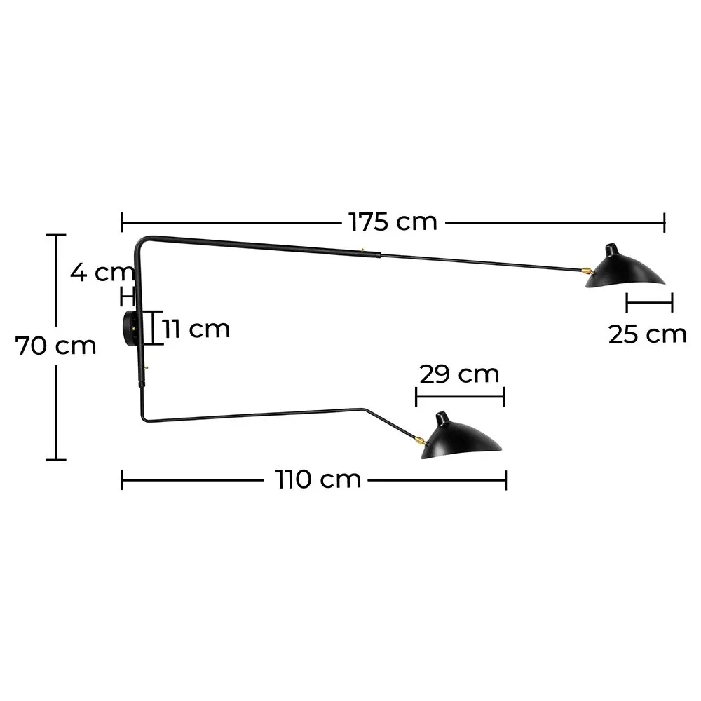 La lampe murale MRZ-R2C est formée de deux bras avec deux têtes pivotantes qui vous permet de contrôler la diffusion de la lumière à l'endroit désiré.