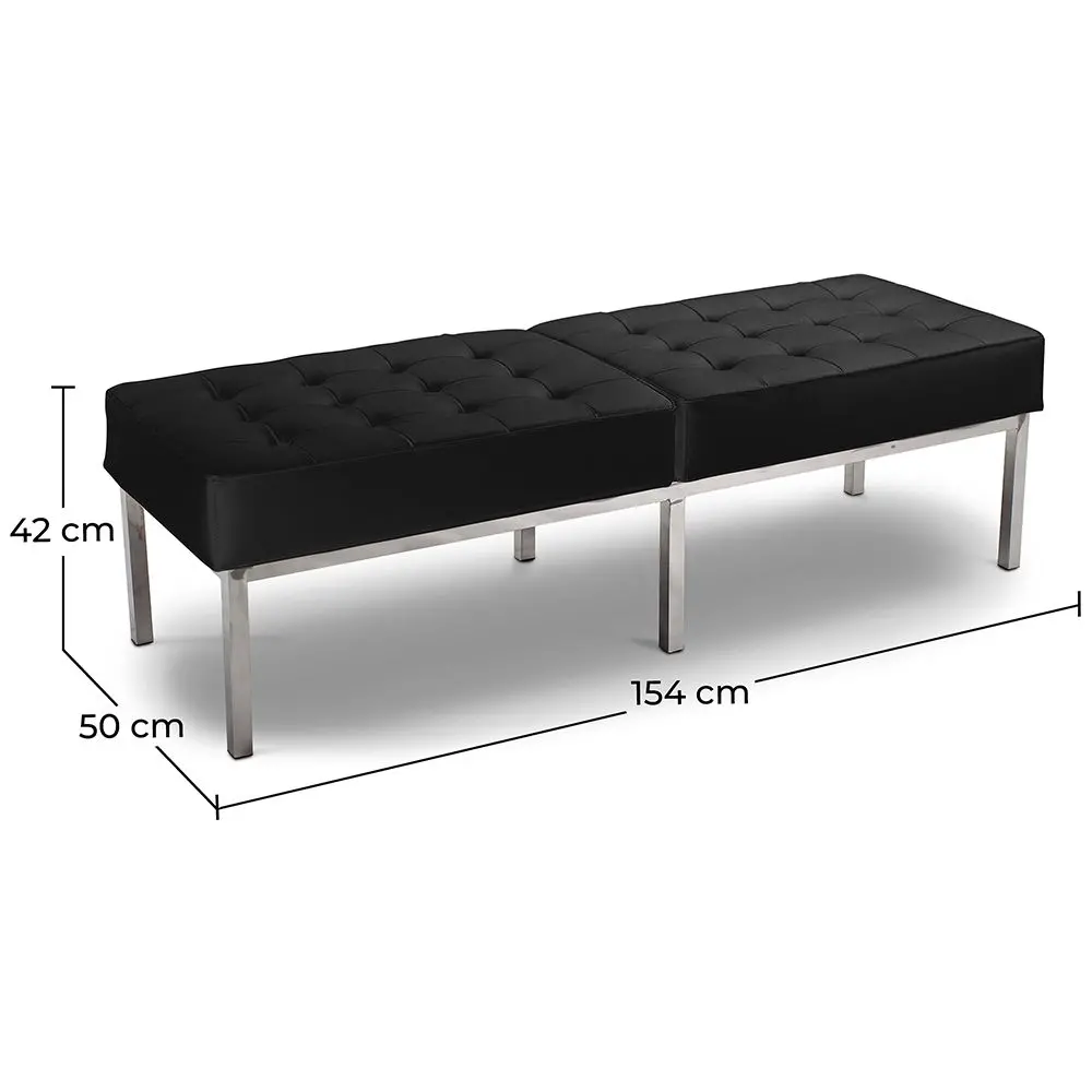 La banquette spacieuse en simili cuir tenue par quatre pieds en acier affiche un confort parfait pour 3 personnes. Ce mélange de matériaux de qualité contribue à créer une pièce de mobilier élégante et design.
