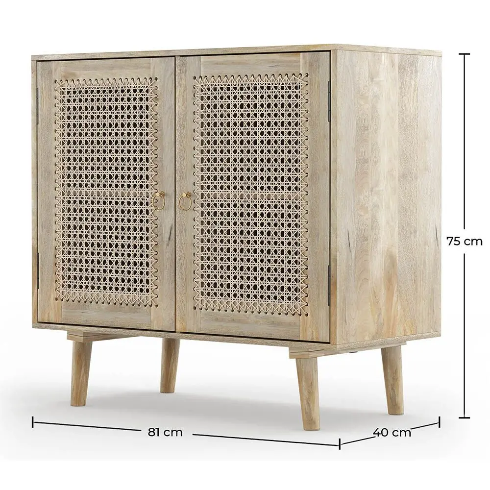 Buffet bohème idéal pour les petits espaces. Avec son cadre en bois de manguier et ses portes en paille de Vienne en rotin, ce buffet en bois vous permettra d’organiser vos espaces et de vous détendre dans votre bureau, votre salon ou votre entrée.