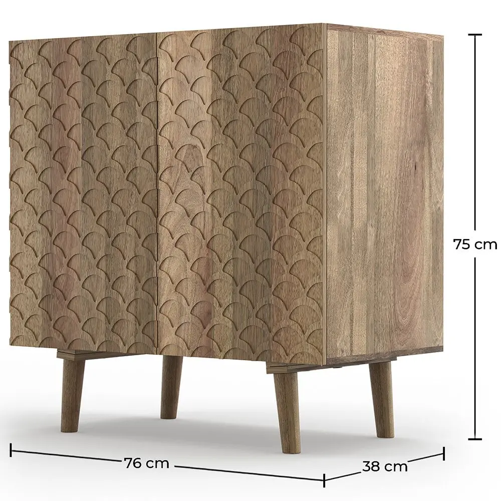 Armoire en bois de manguier avec quatre compartiments et portes décoratives. Sa fabrication en bois ajoutera de la chaleur à votre salon ou à votre salle à manger.