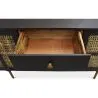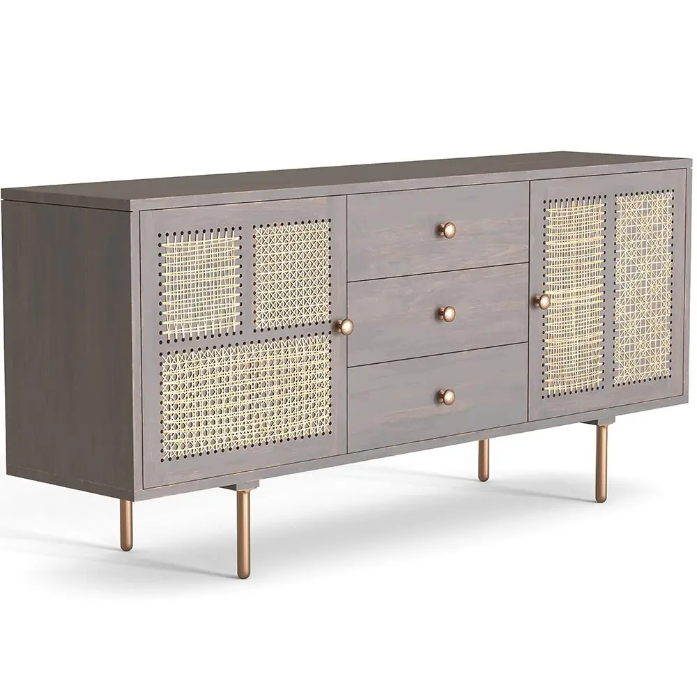 Apportez une touche naturelle à votre salon ou votre chambre avec ce magnifique buffet vintage en bois. Fabriqué à partir de bois de manguier et de rotin, ce buffet vintage est bien plus qu’un meuble, il s’agit d’un véritable objet de décoration qui plaira aux amateurs de mobilier rustique. Très pratique, ce buffet dispose de nombreux rangements, dont trois tiroirs et deux étagères avec portes, l’idéal garder tout ce dont vous avez besoin à portée de main.