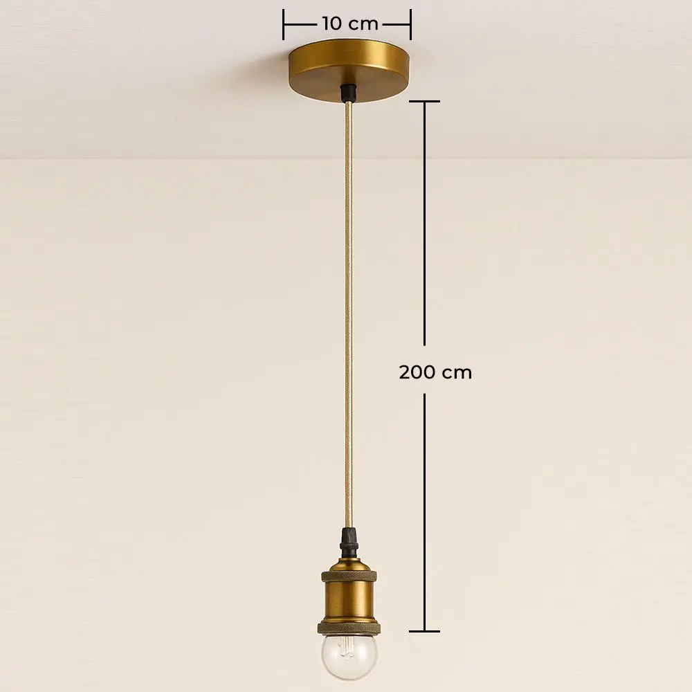 Apportez une touche d’élégance vintage à vos espaces avec ce câble pour lampe suspendue à finition dorée vieillie. Son design sophistiqué et intemporel se marie parfaitement avec des ampoules décoratives ou des abat-jours au style rétro et industriel. Fabriqué en métal finition brossée, il dispose d’une douille E27 et d’un câble textile doré réglable en hauteur, idéal pour répondre à différentes exigences d’éclairage et hauteurs de plafond.