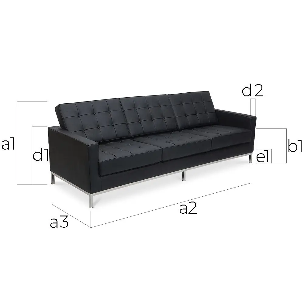 Ce Canapé Kanel (3 places), créé en 1954, est l'une des créations majeures avec ses lignes épurées, fluides et résolument modernes. Sa banquette en cuir premium aux formes généreuses accueillera aisément 3 personnes et procurera à ses occupants un confort haut de gamme. Son piètement en acier inoxydable confère également à ce superbe modèle une grande stabilité.