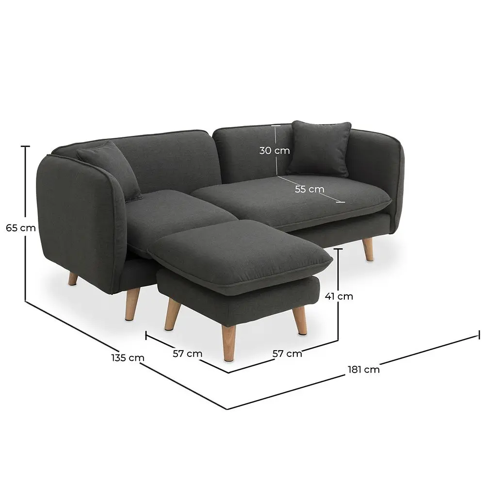 Il est composé d'un canapé 3 places et d'un pouf. Ce canapé de style nordique confortable est recouvert de lin doux et ses coussins sont remplis de mousse délicate. Les pieds obliques sont faits de bois solide de couleur naturelle accentuant encore plus le style scandinave.
