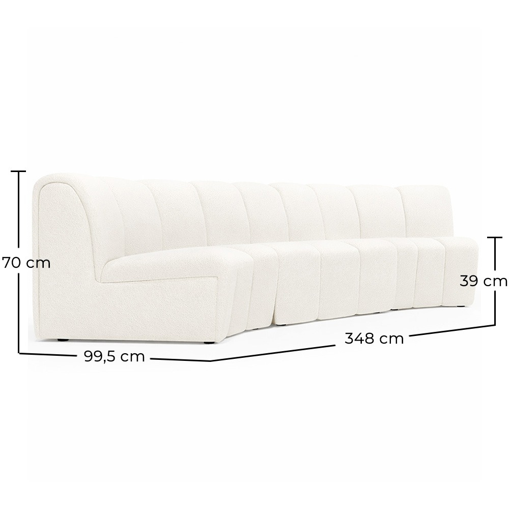Immergez-vous dans le luxe et la sophistication avec notre canapé modulaire au design exclusif. Revêtu d'un bouclé blanc doux, chaque module de ce canapé est une œuvre d'art minimaliste qui se marie parfaitement avec une structure en bois massif. Son design courbé ajoute une touche d'élégance moderne, idéale pour se démarquer dans l'environnement de n'importe quel hôtel de haut standing. Avec son style minimaliste et son confort inégalé, ce canapé offre une expérience de luxe incomparable pour les clients exigeants.