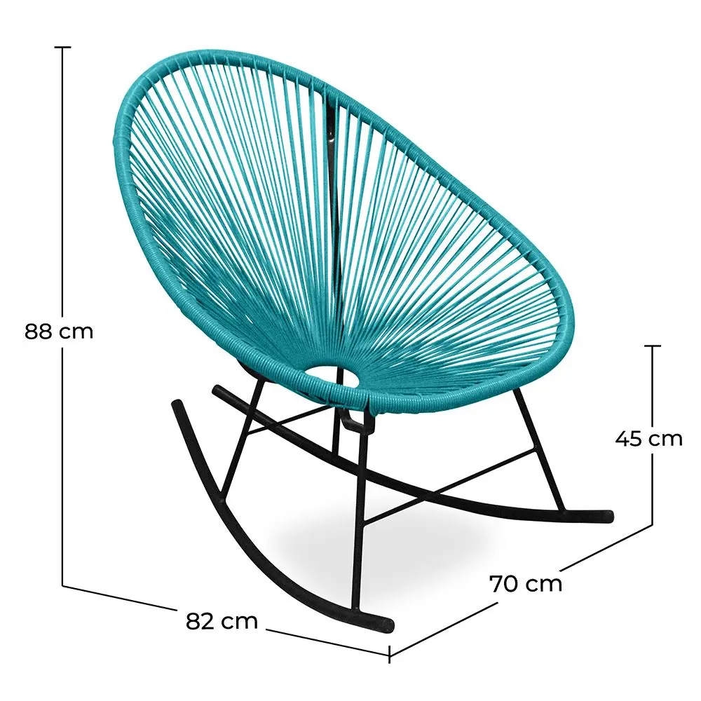 La chaise mythique Acapulco est réinventée pour vous offrir une version à bascule. Cette chaise adaptée aussi bien l'intérieur qu'à l'extérieur est fabriquée avec une structure en acier de couleur noire et un siège en corde synthétique. Vous pourrez passer des heures, bercé par cette chaise Acapulco confortable, à profiter du soleil ou lire un bon livre.