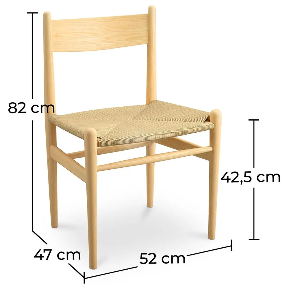 Parfait pour apporter une touche classique à votre salle à manger ou cuisine, La chaise CW36 est très respecté, Elle est confortable, stable et très résistante. Elle est constituée d’une structure en bois de frêne et d’une assise en corde tressée. Cette chaise de salle à manger n’est pas sans rappeler les chaises que l’on pouvait trouver dans la cuisine auparavant.