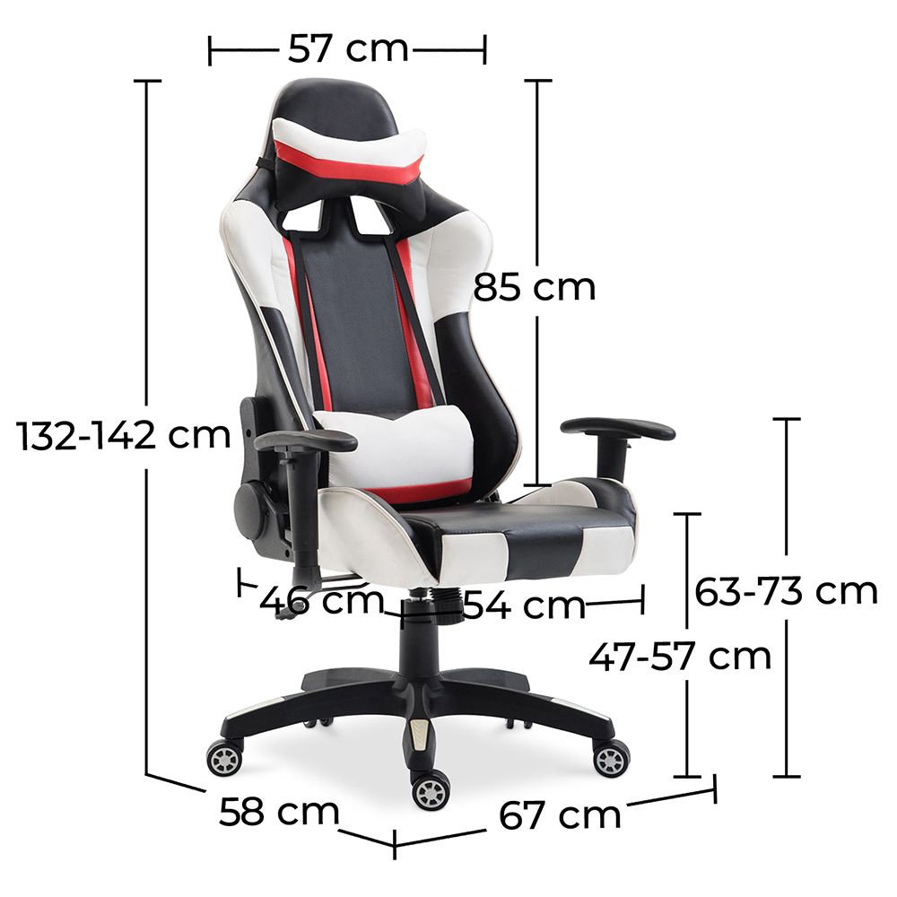 Cette chaise pivotante, réglable en hauteur disposant de roulettes est le modèle parfait pour les joueurs à la recherche de confort, de résistance et de design. Recouverte de simili cuir d'excellente qualité et remplie de mousse souple, cette chaise de bureau est un luxe auquel vous ne pourrez résister.