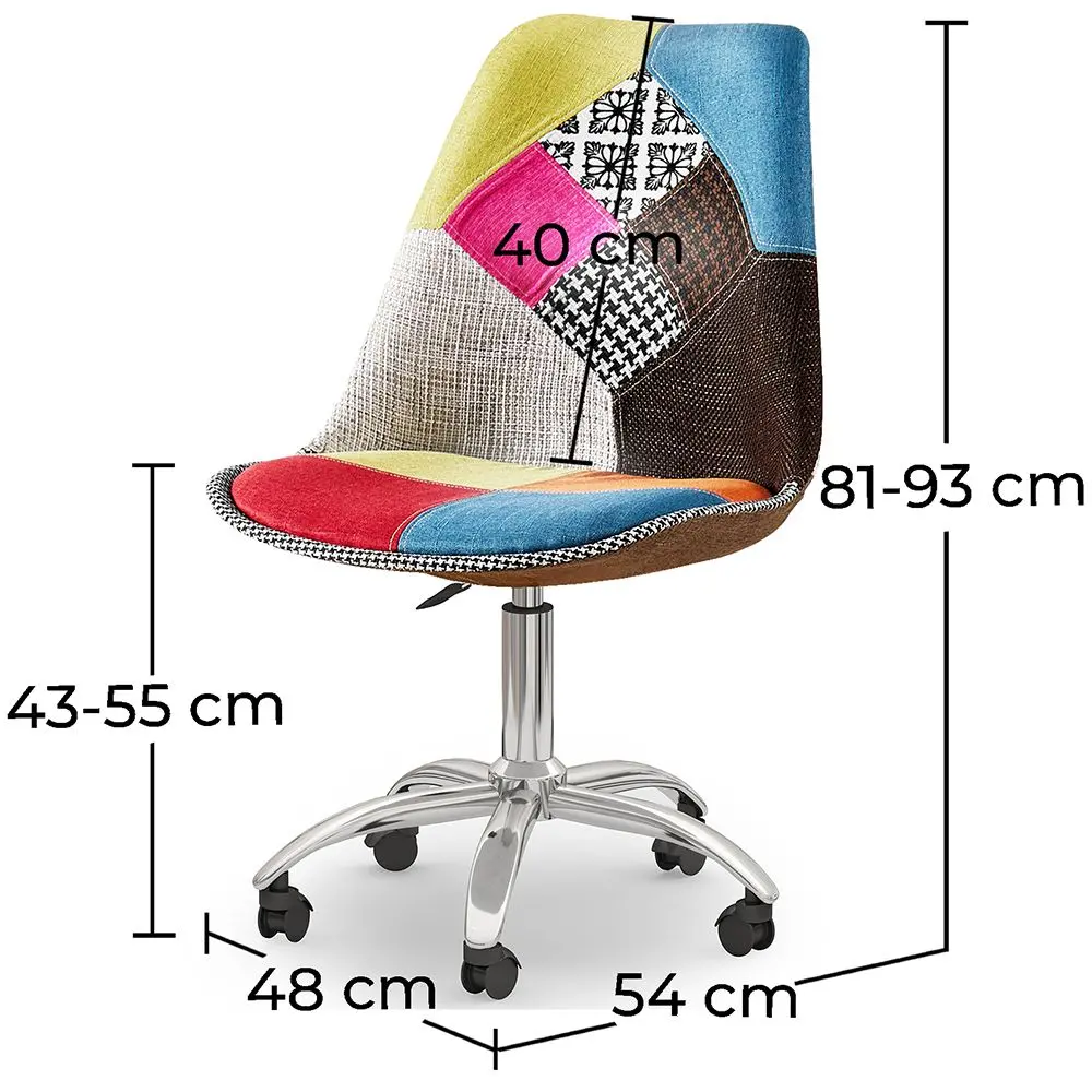 Notre chaise d'étude à roulettes est une chaise élégante et contemporaine, très solide et de qualité supérieure. Il s'agit d'une chaise de bureau réglable en hauteur, rembourrée en patchwork, idéale pour la maison ou le bureau.