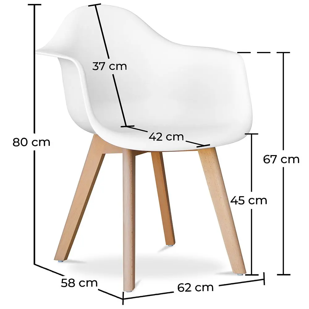La chaise Amir avec les jambes en bois est constituée d'un siège en plastque résistant et de qualité. Les pieds entrecroisés sont faits en bois et sont stables et solides.
