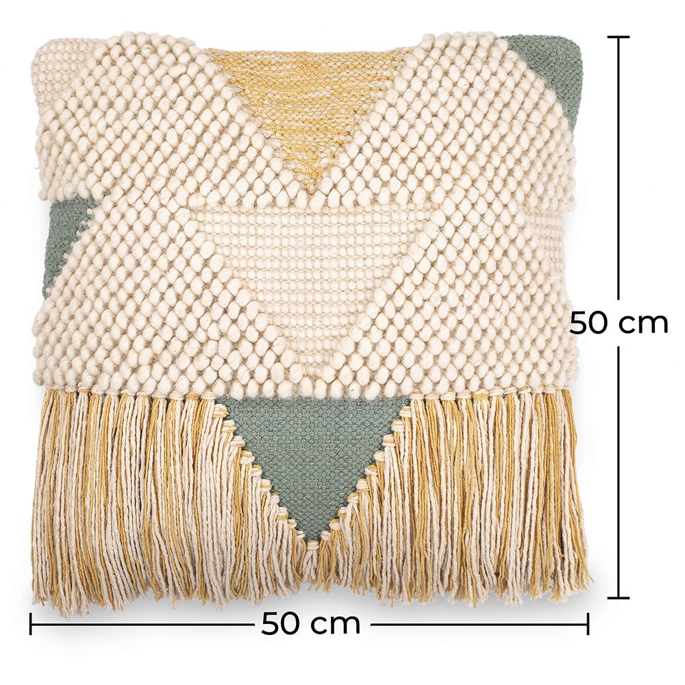 Laissez-vous charmer par Metsal, ce magnifique petit coussin boho et sa housse au charme rustique fabriquée en coton et laine. Très doux, ce coussin sera du plus bel effet placé sur votre canapé, dans votre salon ou dans votre chambre et offrira à votre décoration intérieur une petite touche chaleureuse apaisante. Remplissage inclus.
