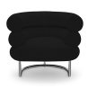 Le Fauteuil de salon design Bivedoo est un fauteuil de salon au design superbe : un siège rembourré revêtu de cuir premium et constitué d'une large assise et d'un dossier enveloppant, faits de deux coussins ronds à piqûres originales, posés l'un sur l'autre, au confort exceptionnel. Le tout posé sur une structure en tubes d'acier chromé, domaine dans lequelle la designer excellait.