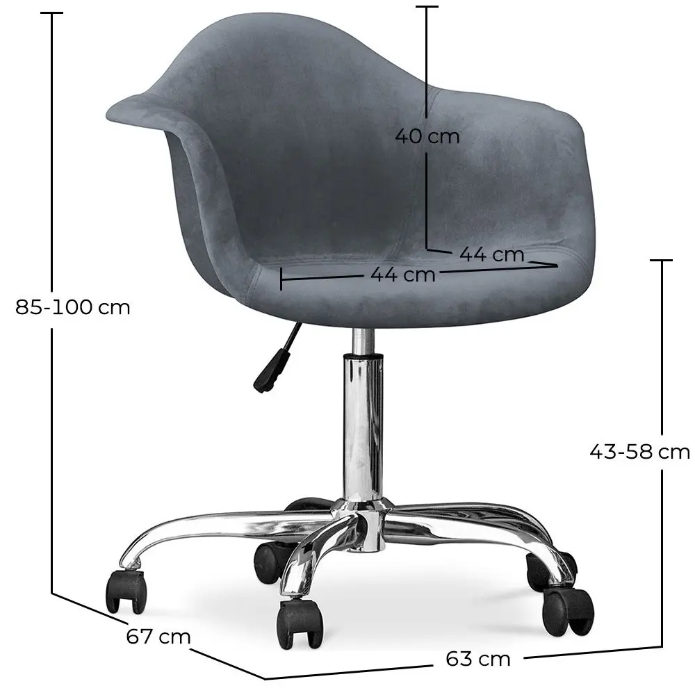 Parce que le confort d'une chaise est essentiel, cette chaise de bureau ergonomique fut élaborée pour votre bien-être avec son dossier enveloppant et des accoudoirs souples. Le design galbé accompagné d’un revêtement en velours est synonyme d’élégance, de modernité et de confort. La liberté de mouvement et de réglage de notre chaise de bureau Loy est garantie avec ses 5 roulettes pivotantes à 360°, permettant de vous déplacer librement pendant votre travail. Enfin, le levier de commande à piston situé sous le siège vous permettra de régler facilement la hauteur.