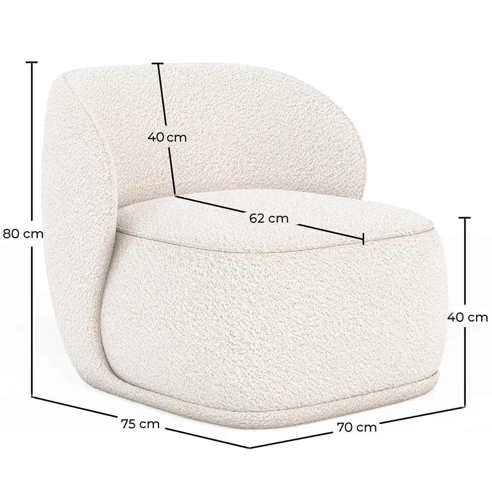 Treyton est un fauteuil qui ne passera pas inaperçu, élégant, simple et tendance. Ce fauteuil design est idéal pour les hôtels, les cafés ou les espaces publics à la recherche d'une touche de style dans leur mobilier. Cependant, il est également parfaitement adapté pour le salon ou la chambre à coucher. Le revêtement en tissu bouclé qui imite la peau de mouton donnera une atmosphère chaleureuse et confortable à votre pièce, et son dossier enveloppant et son siège rembourré offrent un siège confortable et agréable.