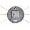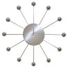 Douze petites boules argentées comme des satellites gravitant autour d’un grand cercle central, sur lequel sont accrochées les aiguilles de cette horloge murale. Le métal reflète la lumière. En plus de vous donner l’heure, il s’agit d’un véritable objet de décoration pour égayer votre salon, cuisine ou chambre à coucher.