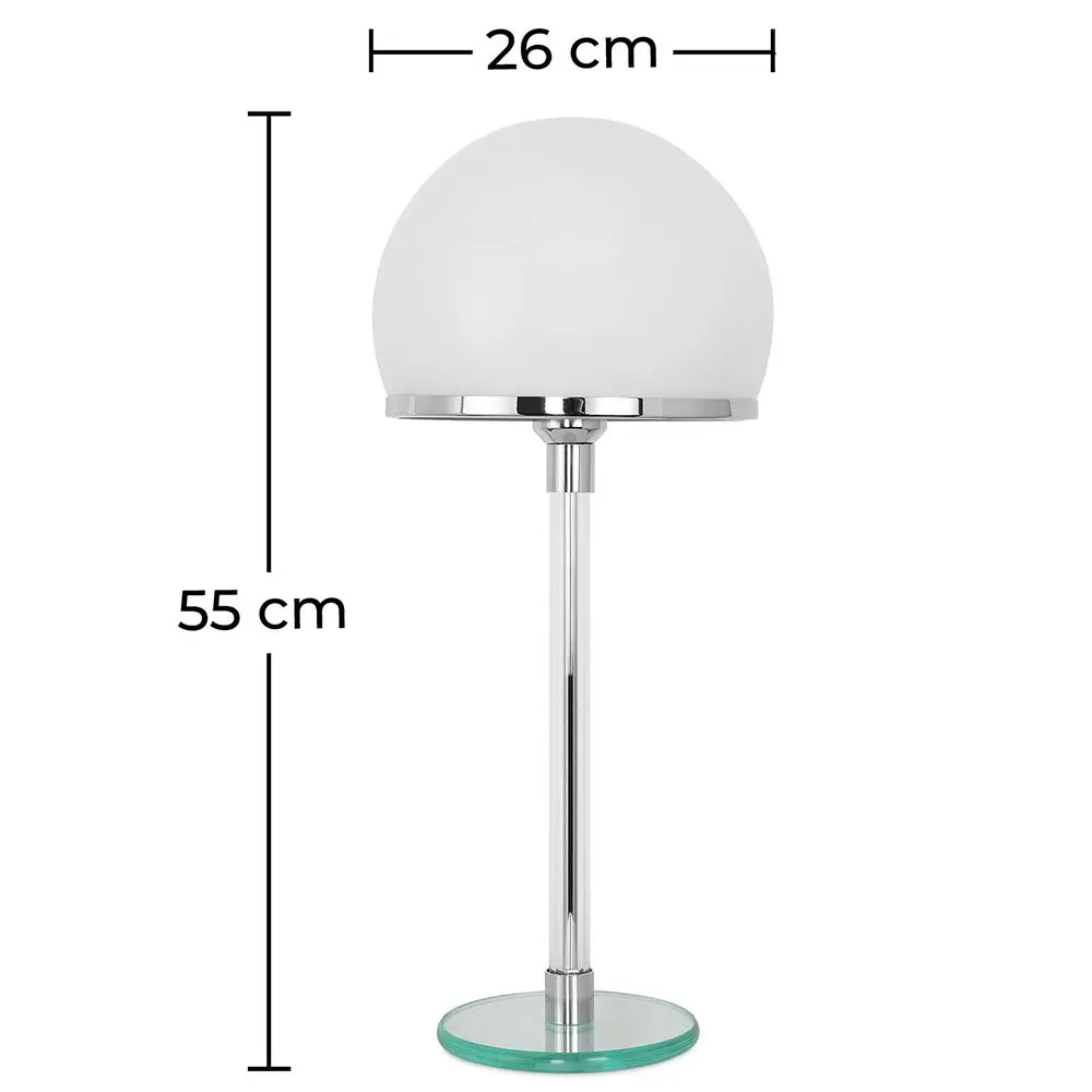 La remarquable combinaison verre/cuivre chromé est un mélange audacieux mais réussit et plein d'élégance. Très chic, cette Lampe de bureau blanche Bauha donnera une touche de gaieté et de luxe à votre foyer ou votre bureau.