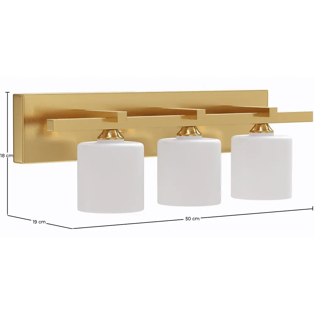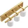 La structure est en métal doré vieilli, ce qui lui donne un air intemporel et une touche vintage qui ajoute de la personnalité à son design. Chaque point lumineux est équipé d'un superbe abat-jour en verre blanc, qui diffuse la lumière de manière uniforme et douce, créant une atmosphère chaleureuse et agréable. La pureté du verre blanc se marie parfaitement avec l'éclat chaleureux du métal doré, créant un jeu de contrastes visuellement attrayant.