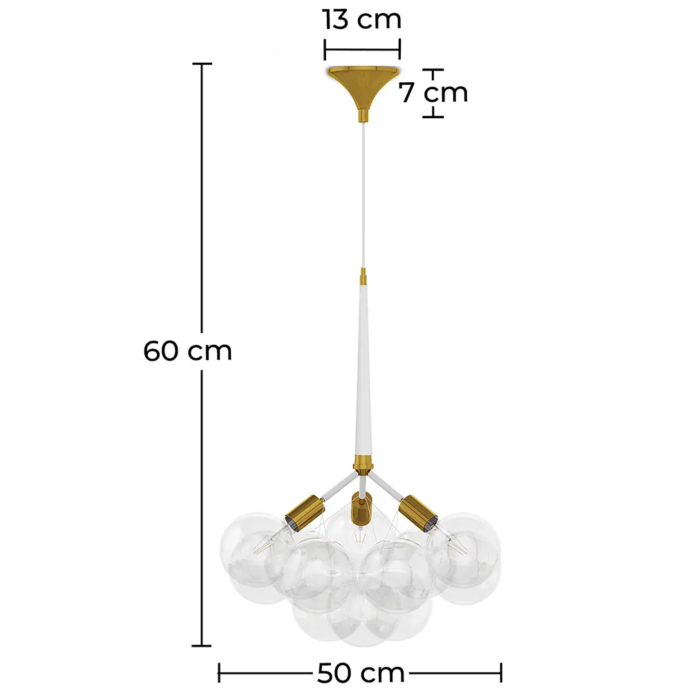 Difficile de résister au charme de ce magnifique lustre globe moderne. Ce plafonnier dispose de trois ampoules qui créent un agréable jeu de lumière au travers de ses neufs globes en verre disponibles en trois coloris différents. Placé dans votre chambre, votre hall d’entrée ou votre salon, ce lustre apportera une irrésistible touche contemporaine qui ne laissera personne indifférent.