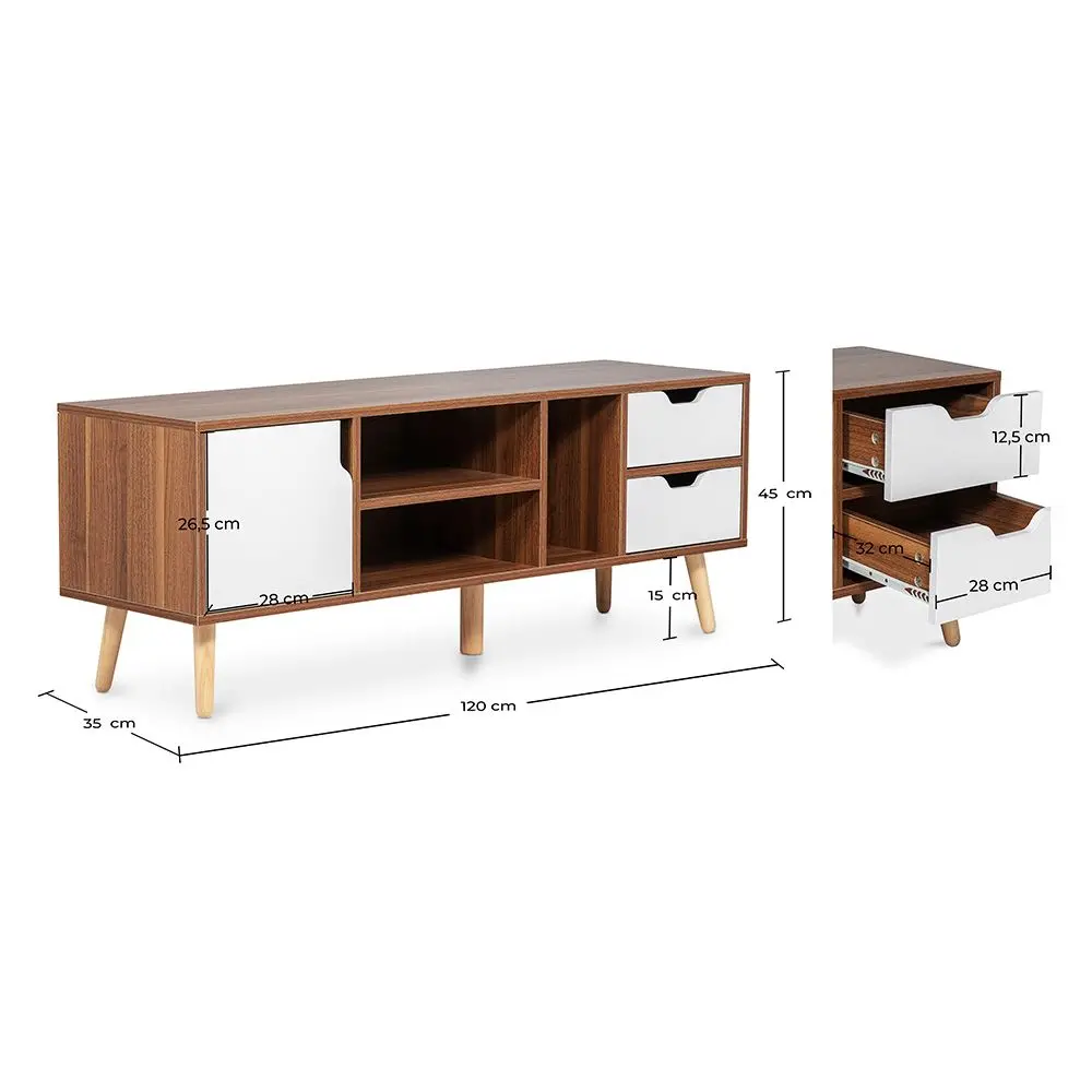 Nous sommes fiers de vous présenter Lal, un magnifique Meuble de TV buffet en bois qui emprunte au meilleur du design scandinave. Fabriqué à partir de bois naturel avec sa structure en panneaux de particules et ses robustes pieds en bois de pin, ce Meuble de TV buffet est également très moderne et design, notamment grâce à ses belles couleurs, sobres et élégantes. Nul doute qu’il sera du plus bel effet dans votre chambre comme dans votre salon.
