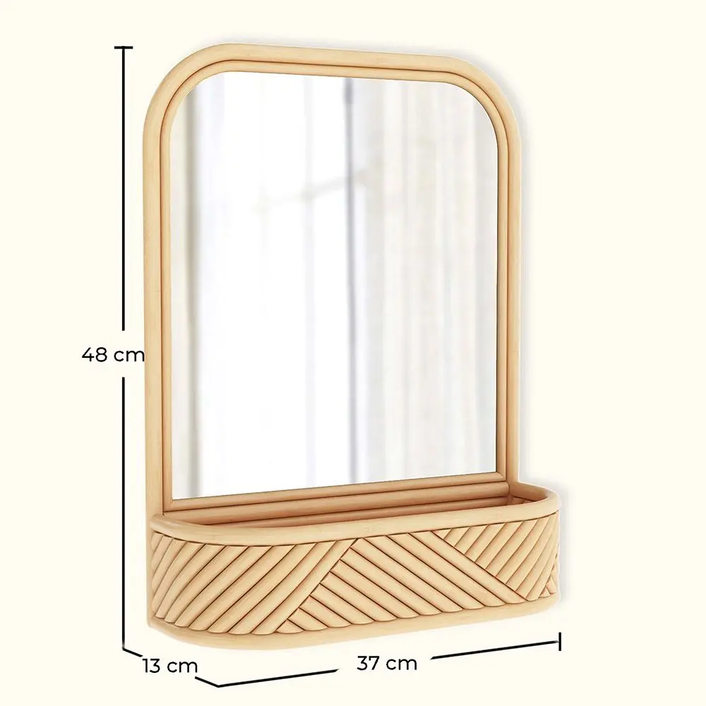 Notre miroir mural de style boho sera magnifique dans n'importe quelle pièce de votre maison. La conception ethnique du rotin le rend parfait pour ajouter une touche naturelle à la salle de bain, l'entrée ou la chambre à coucher. Le compartiment du miroir est parfait pour ranger de petits objets ou pour le décorer avec une petite plante. Il mesure 48 cm de hauteur et le compartiment a une largeur de 13 cm. Notre miroir mural Dania est en rotin naturel et est livré dans une belle couleur naturelle.