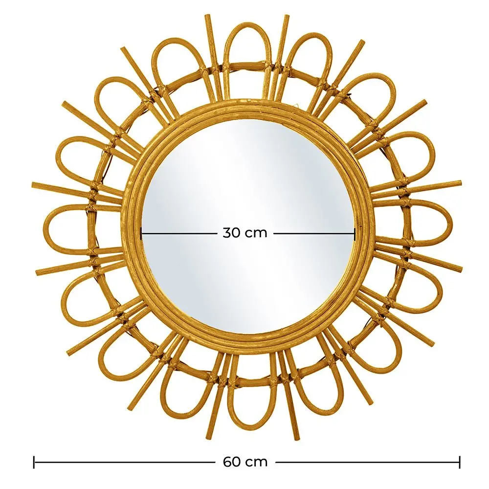 Difficile de résister à la beauté solaire et chaleureuse de ce splendide miroir mural rond. Idéal pour les férus de décoration Boho chic, ce miroir mural boho est fabriqué à partir de rotin 100% naturel tissé à la main. Sa forme atypique et son degré de finition luxueuse en font un véritable objet de décoration qui ne laissera personne indifférent.