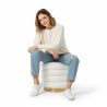 Profitez du confort et du style maximum avec notre pouf rond tapissé en tissu bouclé rappelant la laine de mouton. Avec une structure en bois et une base dorée, ce pouf allie élégance et modernité dans un design unique. Son revêtement doux et confortable offre une expérience d'assise luxueuse, tandis que son design rond offre un aspect contemporain. Parfait pour ajouter une touche de sophistication à tout espace, ce pouf est synonyme de qualité supérieure et de style raffiné.