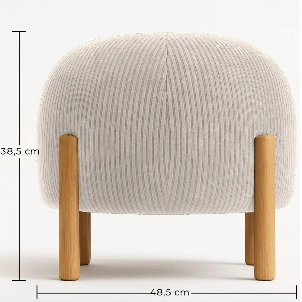 Pouf Rond Tapissé en Velours Côtelé avec Pieds en Bois Naturel - Merv
