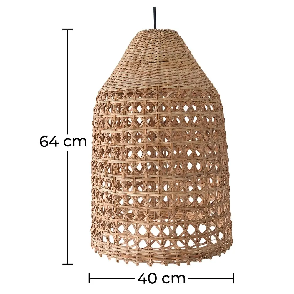 Cette suspension en rotin en forme de cloche est un produit design qui diffuse une source lumineuse intense depuis un abat-jour tressé. Cette pièce de style bohème ne prend que peu d’espace et sera idéalement installée dans une salle à manger, une cuisine, un bureau, à l'intérieur comme à l'extérieur. Ce produit apportera du style tout en illuminant vos espaces.