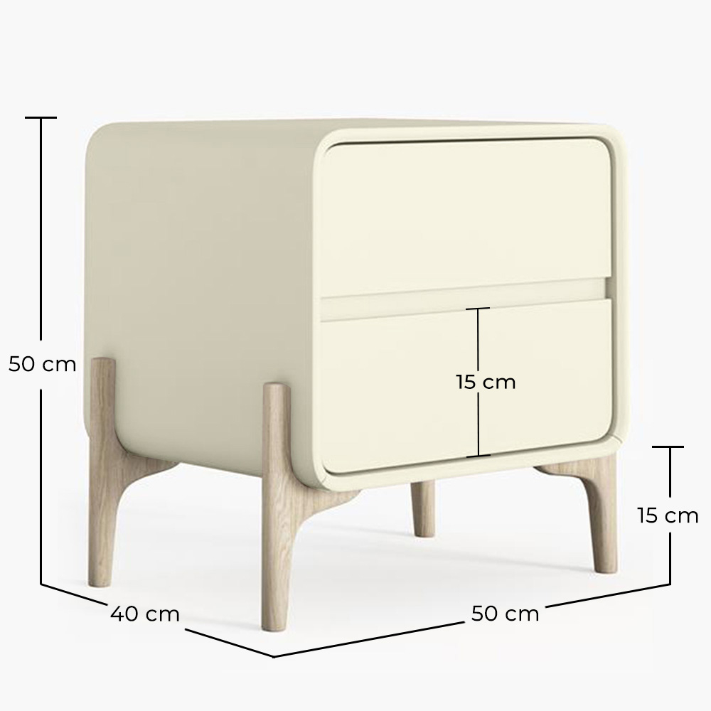 Apportez style et fonctionnalité à votre chambre avec cette table de chevet au design moderne scandinave. Fabriquée avec une structure en bois et recouverte de similicuir de haute qualité, elle offre une finition douce et contemporaine qui s'adapte à tout environnement : chambres d'adultes, d'adolescents ou d'enfants. Ses deux tiroirs spacieux facilitent l'organisation, tandis que ses pieds en bois massif de couleur naturelle offrent stabilité et une touche chaleureuse et organique.