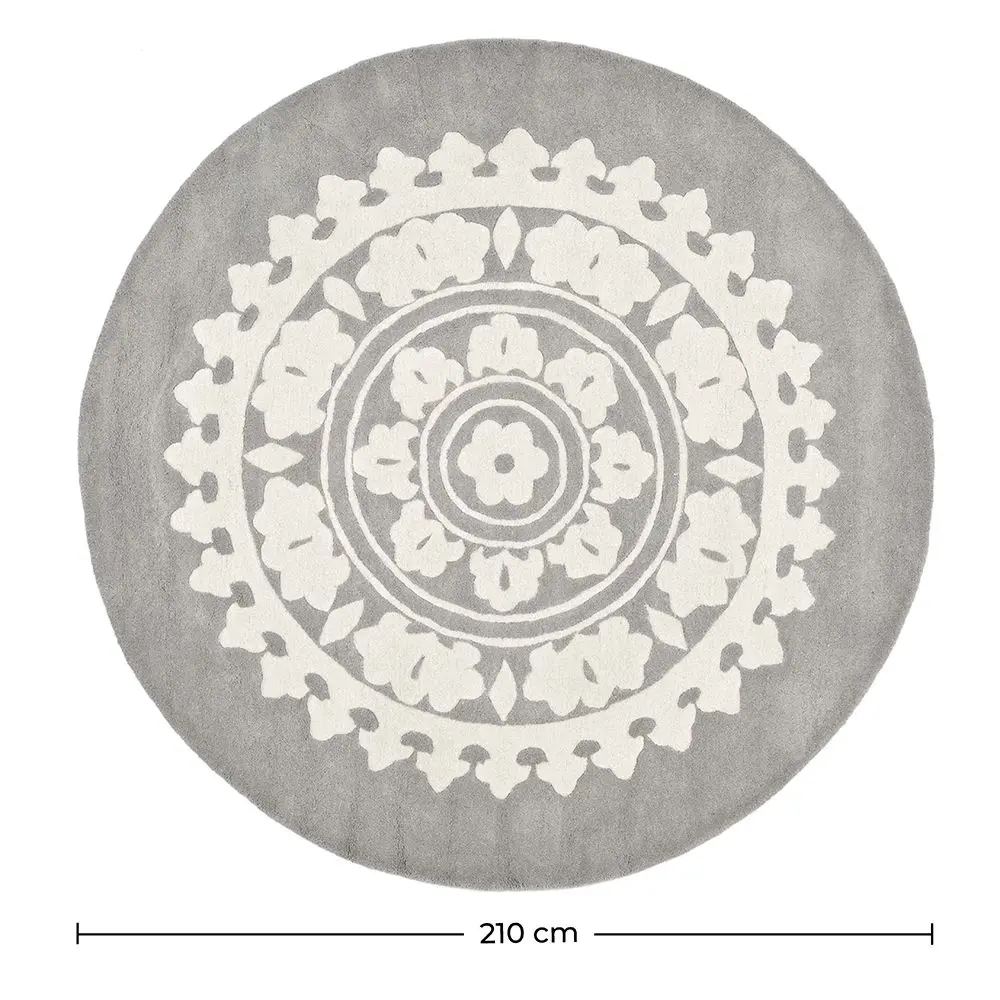 Élégant, sophistiqué et simple, ce sont les qualités qui définissent ce tapis rond. Il est fait à la main avec de la laine de haute qualité par des artisans experts. Sa conception romantique donnera raffinement à n'importe quel espace. C'est un tapis de 210 cm de diamètre, il a donc la taille parfaite pour les petites ou grandes chambres.