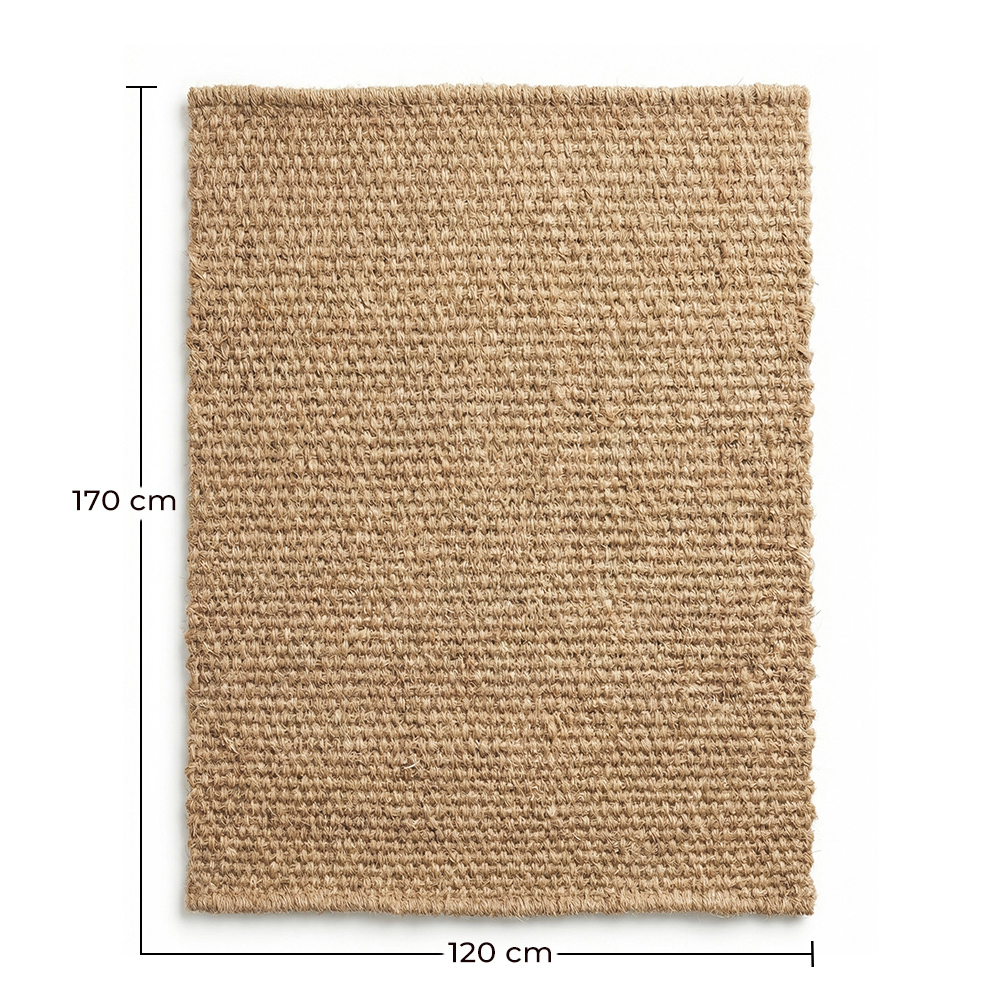 Grâce à sa taille de 170 x 120 cm, il est idéal comme tapis de salon, tapis de terrasse couverte, tapis de porche, tapis d'entrée, ou même comme tapis décoratif de salle à manger. Sa finition en ton naturel se fond facilement avec les styles nordique, rustique, méditerranéen ou boho.