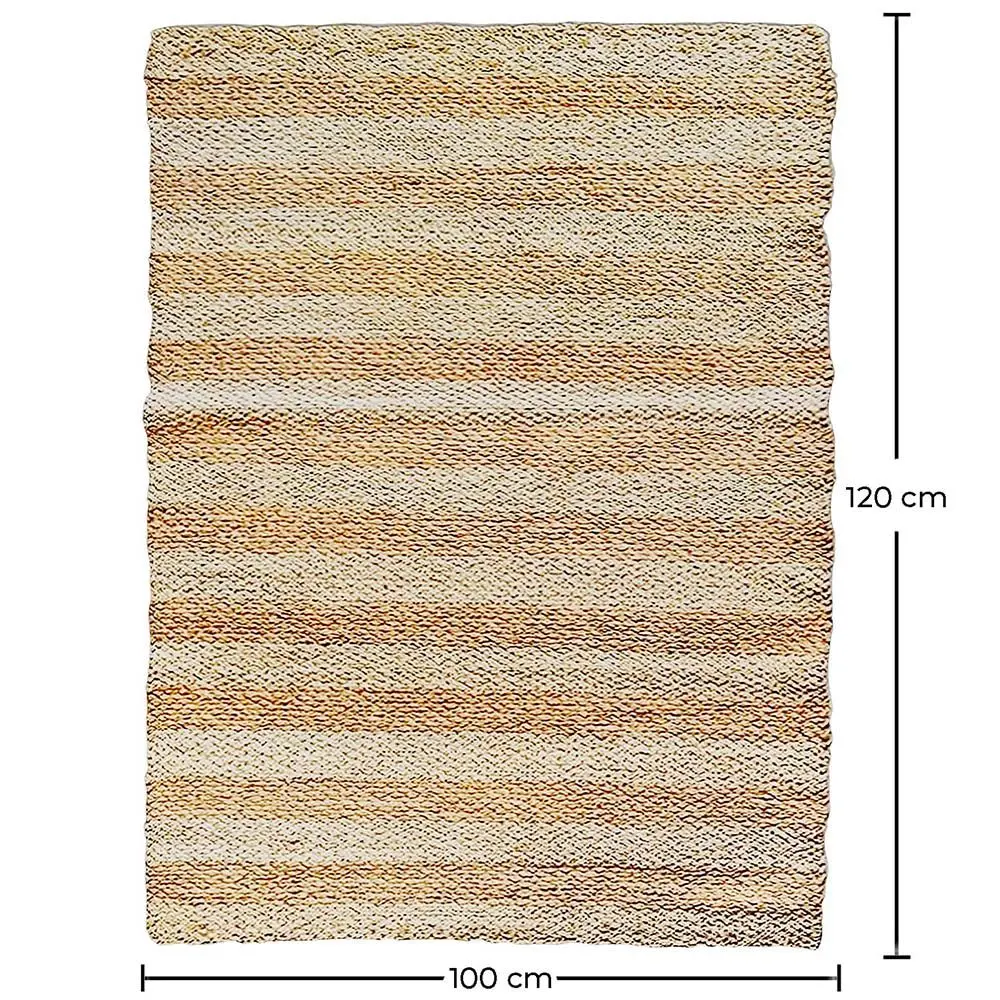 Das boho-Design des Selfa-Teppichs zeichnet sich durch handwerkliche Details und rustikales Flair aus. Der gewebte Jute-Stoff weist Variationen in Textur und Farbe auf, was ihm einen einzigartigen und authentischen Charakter verleiht. Neben seiner ästhetischen Anziehungskraft ist der Selfa-Juteteppich auch eine umweltfreundliche Wahl, da Jute ein nachhaltiges und erneuerbares Material ist. Dies ermöglicht es Ihnen, einen schönen Teppich zu genießen und gleichzeitig die Gewissheit zu haben, eine bewusste Entscheidung zu treffen. Mit den Maßen 100x120 cm, die perfekt für das Esszimmer oder Schlafzimmer sind, wird dieser handgefertigte Teppich Ihrem Raum eine sehr natürliche boho Note verleihen.